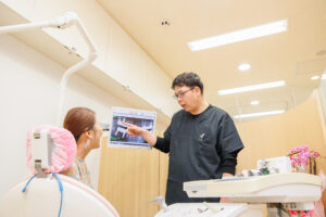 当院では時短治療&無痛治療を導入しています。最新機器と高度な技術で、できるだけ短時間で負担の少ない治療を実現します。痛みを抑えた丁寧な施術で、リラックスして治療を受けていただけます。